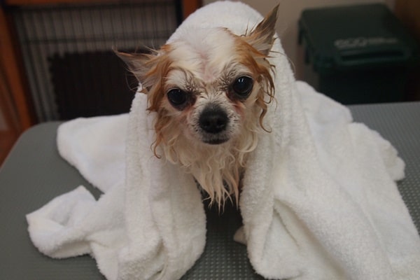 シャンプー後、さらにテンションが下がり、お風呂上がりのおじさんのようなたたずまい。
