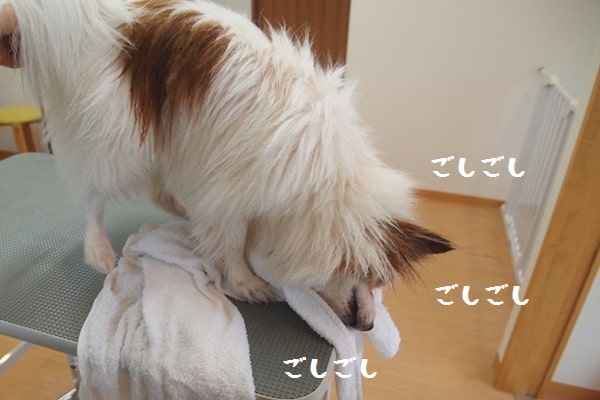 ベルちゃんは自分で顔を拭いてくれるので、顔だけはあっという間に乾きます。