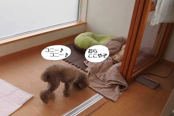 休憩時、寝ているコニーに近付こうとしていたので、「怒られるぞー」と注意喚起。