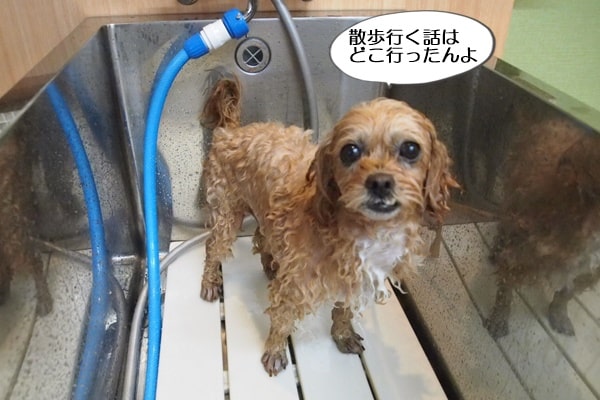 その後雨が上がっていたのでお散歩に行ったのですが、案の定、脚がべちゃべちゃに。