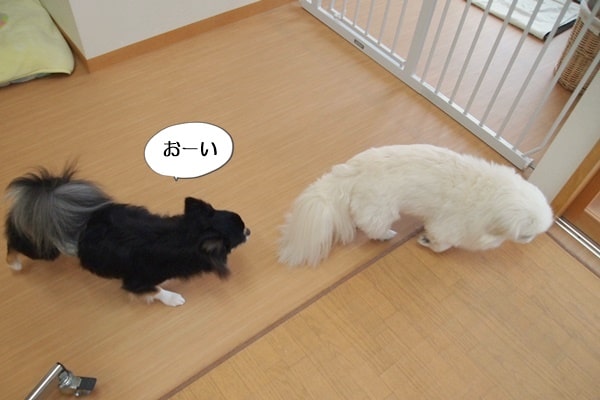 他のわんちゃんが気になって仕方がないのあちゃんと、
