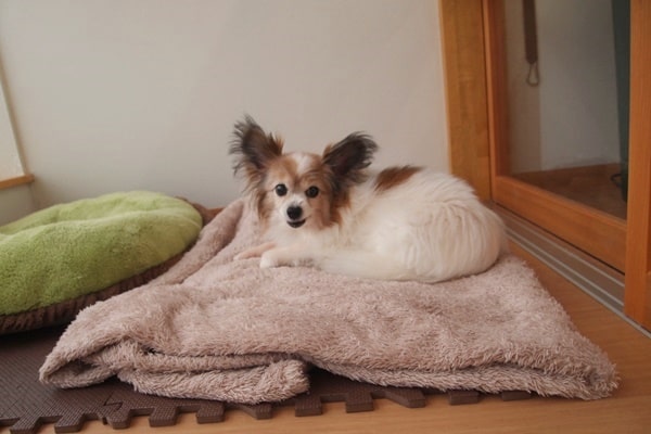 モコちゃんは、よっぽど寒さに強いのか暑がりさんなのか、一切毛布で寝ようとしません。