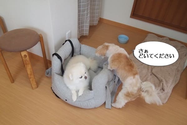 いつもなら入口に毛布を置いたらようやくそこに座っていましたが、