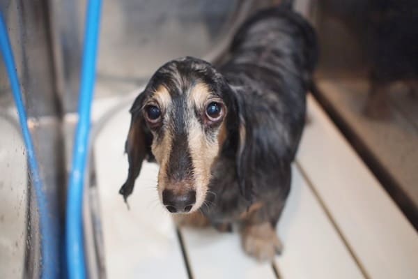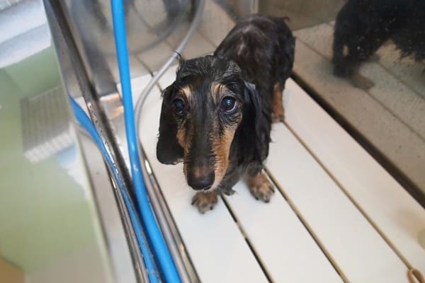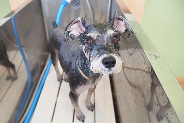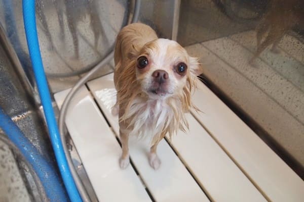 お顔にお湯が掛かるのが苦手な子は何頭もいますが、のんちゃんはお湯が掛かるのは平気なんです。