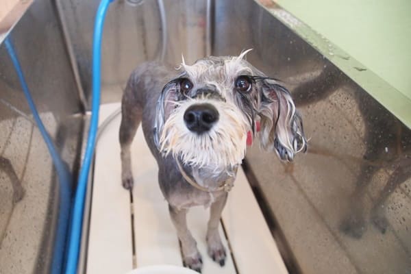 ニオイを嗅ぎ合って、お店のニオイも嗅ぎ回って、落ち着いてからシャンプースタートです。