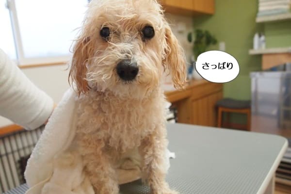 乾かす時にきれいにブラシを入れないと、ごわごわがさらに増すので、お家でのシャンプーは難しい犬種かもしれません。