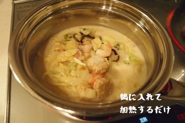水もいらず、ただ中身を鍋に入れて加熱するだけ。