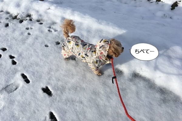 硬そうな雪だし冷たそうだし、その道を通るか迷ったのですが、人間の足跡と、わんちゃんと思われる足跡を発見。