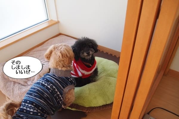 瑠玖ちゃんは、ちょっとうんざりしたように座布団に退避してました。