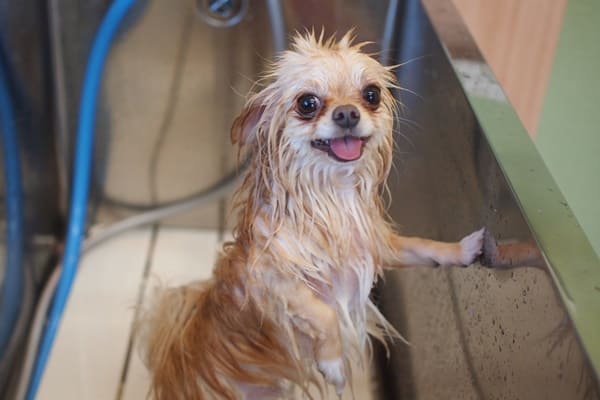 毛量がすごいことになっているので念入りに洗いたいところでしたが、むぎちゃんは水嫌い。