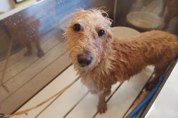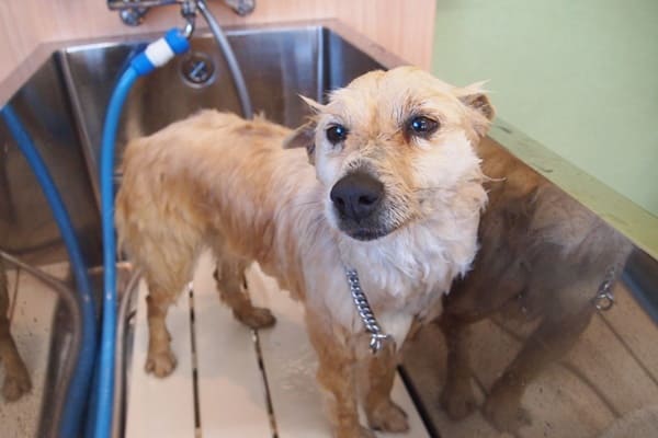 シャンプー中、1度も頭をブルブル振らないさくらちゃん。