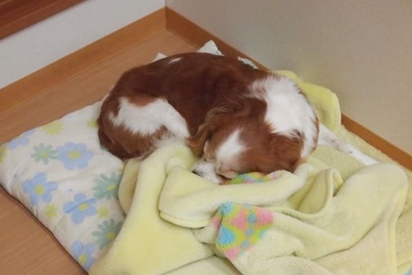 待っている間、触れ合おうかと思って毛布に座っていましたが、その横で本格的に寝始めたサンタちゃん。