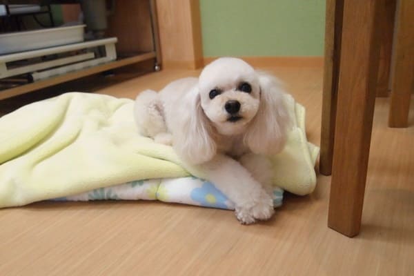 いつもは、机の下で休んでいることが多いのですが、今日はこの明るい場所でいいみたいです。