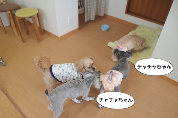 トロちゃんウニちゃんコニーで、チャチャちゃんのニオイを嗅ぎまくり。