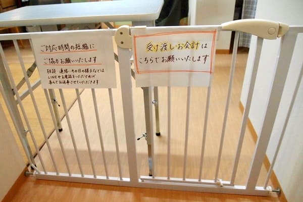 お店の中に入ってもらうと、必然的に話が長くなってしまうので、入口の柵の所で受け渡しをするのがいいみたい。