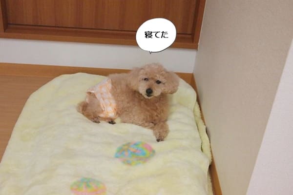 あんずちゃんのカット中、いつもこころちゃんはこの毛布の上ですやすや。