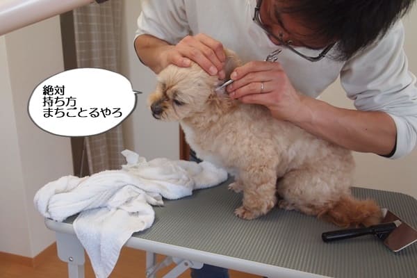 この持ち方だと、パッと動いた時に鉗子(かんし)がグサッと耳に刺さってしまいます。