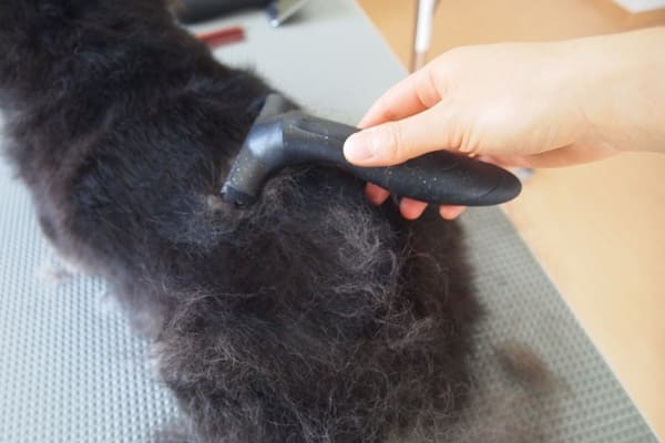 スリッカ―ブラシにも割と多めに毛が絡まってきましたが、本番はここから。