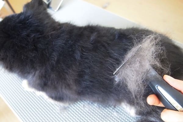 抜け毛を取る専用の道具があるのですが、それを使って背中を撫でると、