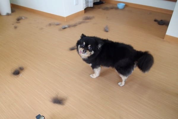 今日はほとんどカットしていないので、床に散らばっている毛は抜けた毛です。