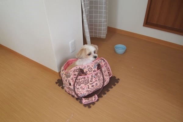 一方モコちゃんは、ブローが終わってからすぐに自分のバッグの中へ。