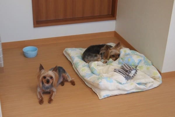 布団の上で寄り添っていたと思ったら、床の上で横になってみたり、各々自由に過ごしていましたよ。