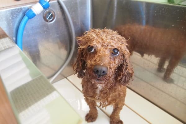 ゴンちゃんは毛量が多いので、念入りにシャンプーしました。