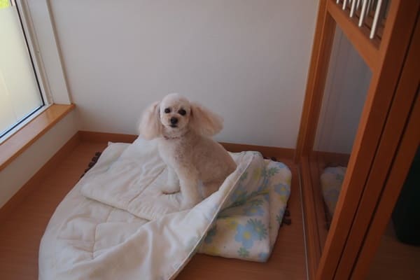 愛犬コニーも家の中では腰を下ろしてしてくれるので、全然壁が汚れません。