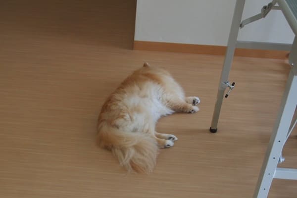 布団も敷いてあるのですが、暑がりさんのモコちゃんは、床の上が気持ちいいみたいです。