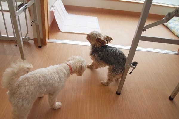 ヤマトちゃんは、どんなに2頭にニオイを嗅がれてもマイペース。