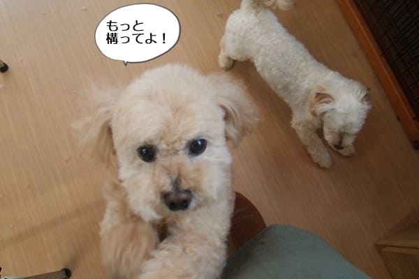 こころちゃんのブロー中、あんずちゃんがすごい顔をして寝ていました。