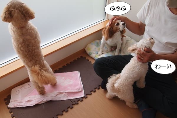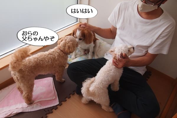 途中から嫉妬のコニーがやって来て、お父ちゃんの膝の上から動かなくなりました。