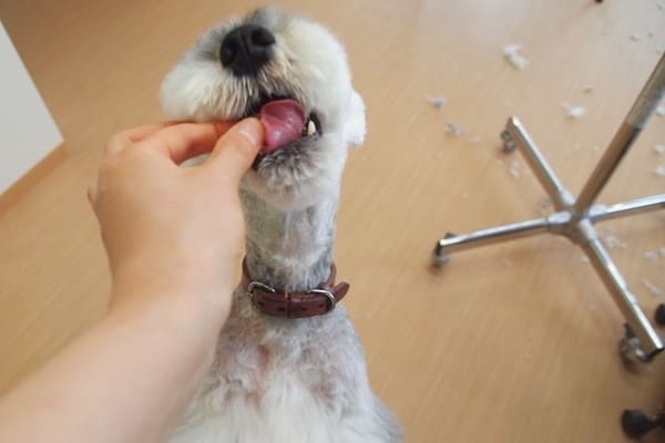 トリミングテーブルの上では急に動き出すことがあるので、パッと動いた時にも反応できるように注意を払ってカットしました。