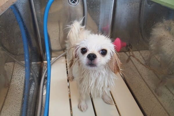 おしっこをしていないと伺っていたので、ブローが終わる前にも休憩を入れました。