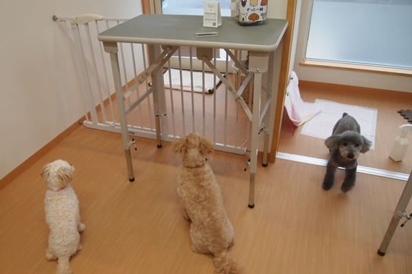 シャンプーブローの時は、とても大人しいし静かなのに、床に降ろすとワンワン言います。