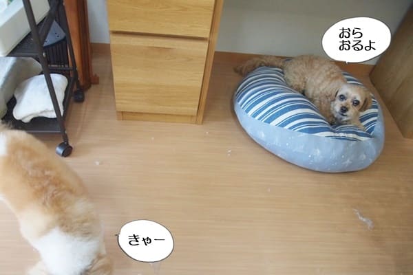 時々私の様子を見に来るので、私が嬉しそうに触れ合おうとすると、また入口の方へ行ってしまいます。