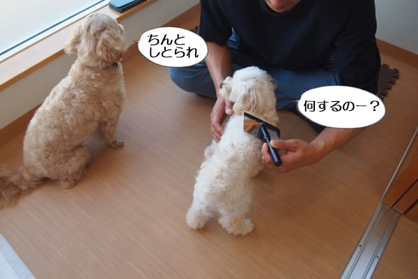 苦手だった前脚の足バリカンも、最近ではするするさせてくれるようになってきましたよ。