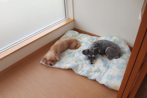 トロちゃんとまろんちゃんが仲良く同じ布団で寝てる!