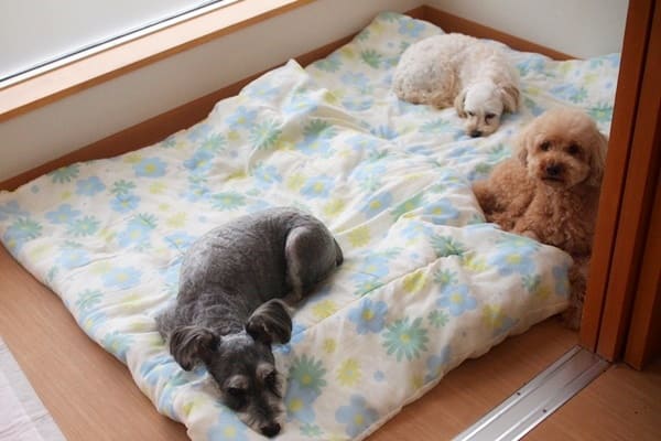 さっきの布団では狭そうだったので、もう1枚をこの場所に移動。