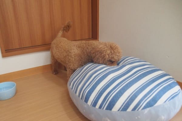 座布団の奥の奥までニオイを嗅いで満足げでした。
