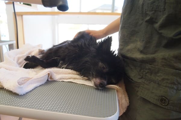 クマちゃんはブローの時、自ら横になってくれるスーパーいい子です。