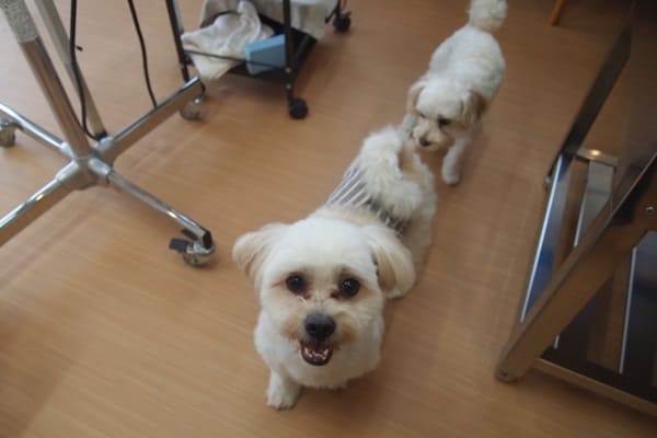 トリミングテーブルに立っている時間が短ければ短いほど、わんちゃん達にとったら負担が少ないので、これはいいやり方かもしれない。