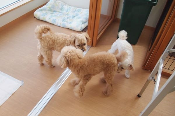 それぞれのお尻を嗅ぐために3頭でぐるぐる回ってます。