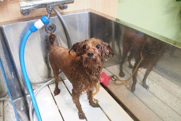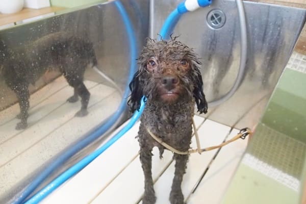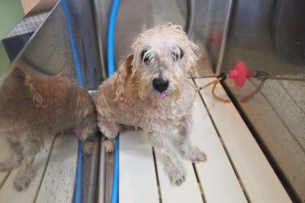 いつもは粗刈りしてからシャンプーをしていましたが、今回はそのままシャンプー。