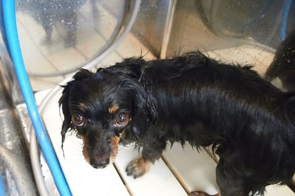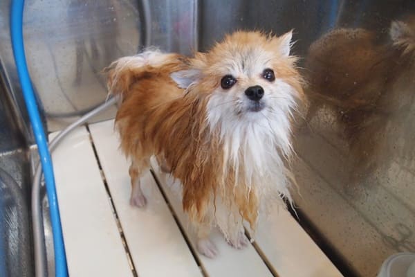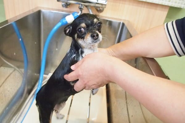 ココちゃんはシャンプーの時に怒るので、お母さんに補助してもらってます。