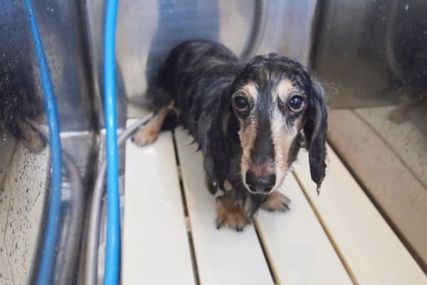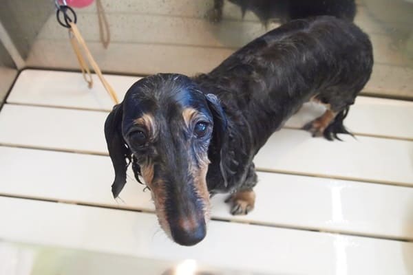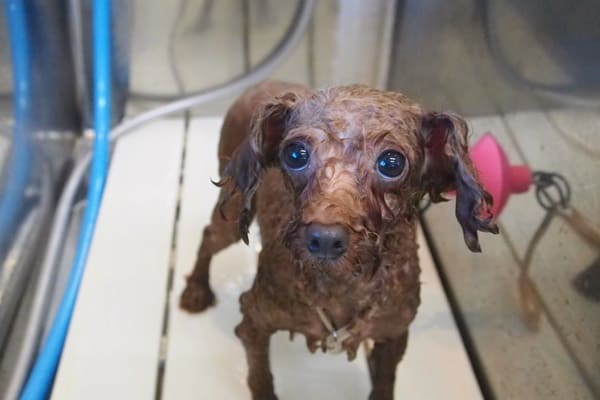 基本は、慣れさせるために、一旦床の上に降ろしてお店のニオイを嗅いでからシャンプーに入るのですが、