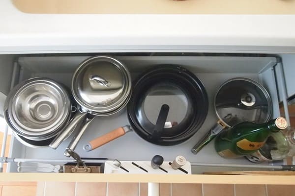 鍋なのに食品が置いてある引き出しに入っていた圧力鍋が、ようやく他の鍋たちと同じ空間に収まることができました。