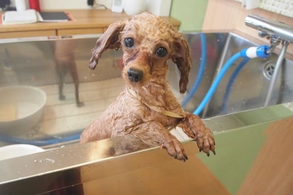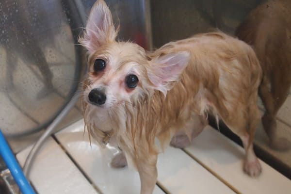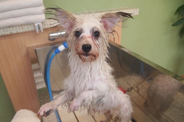お家でもシャンプーしやすいように、おしゃれな太い脚はバスンと短くしました。