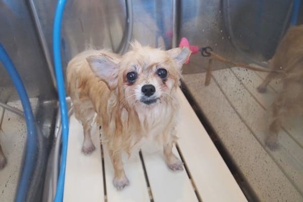 見えないと怖いはずなのに、シャンプーもブローもとてもいい子でした。