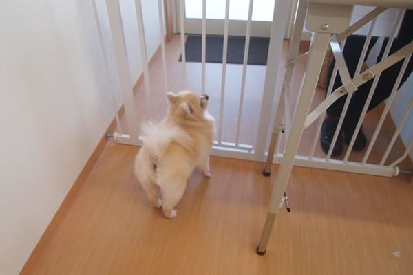 愛犬ミラが扉の向こうにいると知らずに、扉を開けてしまいました。